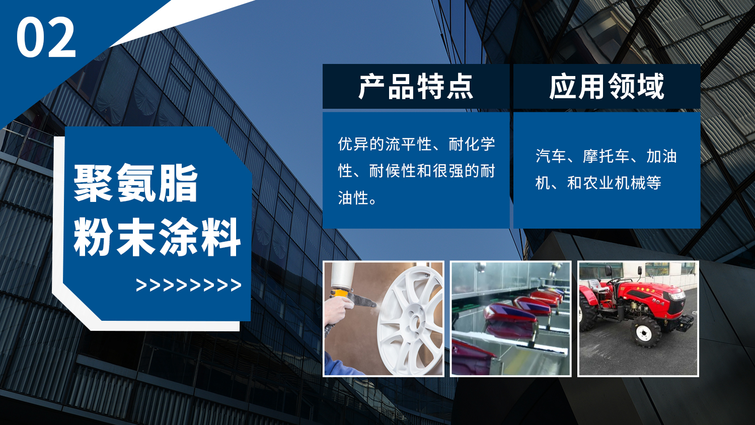 廣泛應用于家用電器、汽車、建材、散熱器、自行車、汽車、家具、健身器材、管道等諸多領域,根據各個領域產品的表面涂裝的不同要求,為其量身定做設計,批量生產不同系列產品。產品以優(yōu)異的性能,穩(wěn)定的品質享譽全省、暢銷全國,并逐步走向國際市場。